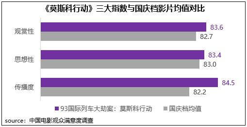 《莫斯科行動》根據(jù)20世紀90年代跨境追捕搶劫案犯案件改編,在真實社會事件基礎(chǔ)之上有機融入商業(yè)化要素,三大指數(shù)得分均超83分。