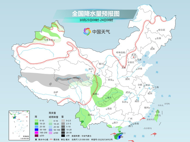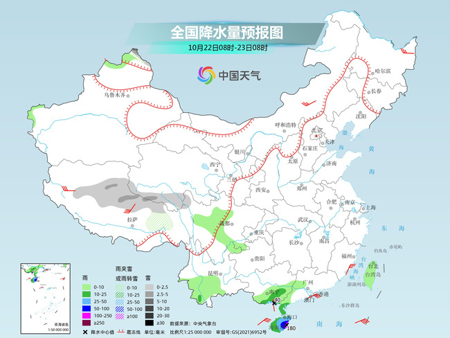明天,新疆北疆北部和沿天山地區(qū)、西藏北部、青海中南部等地的部分地區(qū)有小到中雪或雨夾雪,青海南部局地有大雪。海南島等地部分地區(qū)有中到大雨,其中,海南島東南部等地局地有暴雨。