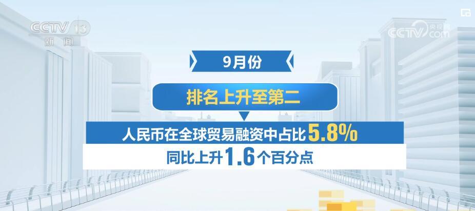 伴隨著中國金融業(yè)對外開放持續(xù)深化,人民幣國際化水平持續(xù)提升。從貿(mào)易看,今年1—9月,貨物貿(mào)易中人民幣結(jié)算的占比達到了24.4%,同比上升7個百分點,為近年來最高水平。與此同時,人民幣融資貨幣功能穩(wěn)步提升。9月份,人民幣在全球貿(mào)易融資中占比為5.8%,同比上升1.6個百分點,排名上升至第二。目前,全世界有80多個國家和經(jīng)濟體將人民幣納入儲備貨幣。