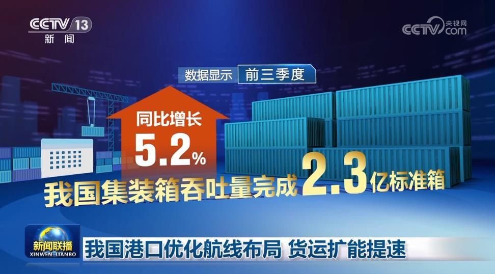 央視網(wǎng)消息(新聞聯(lián)播):今年以來,我國港口緊跟市場需求,積極優(yōu)化航線布局,加大貨物運輸?shù)亩嗍铰?lián)運,助力我國經(jīng)濟發(fā)展。