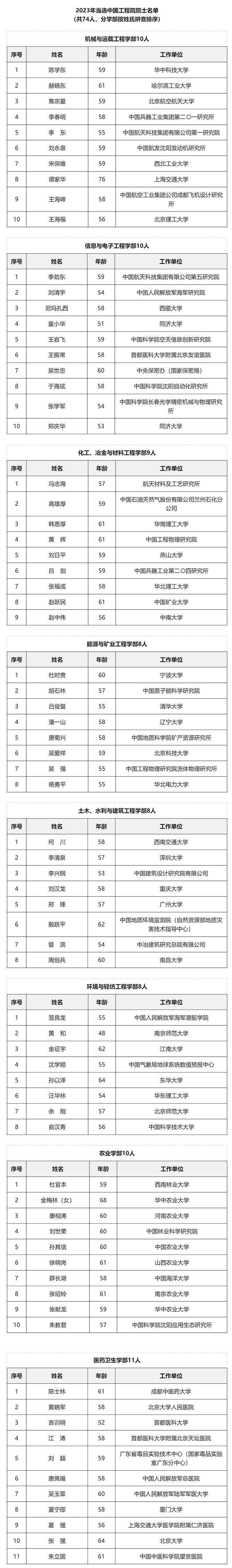2023年兩院院士增選結(jié)果公布