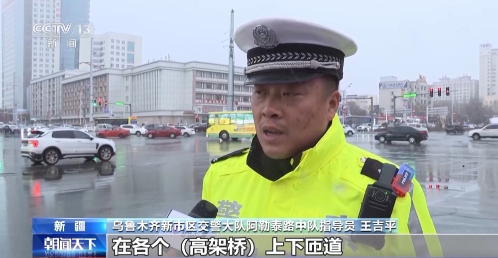 烏魯木齊新市區(qū)交警大隊(duì)阿勒泰路中隊(duì)指導(dǎo)員 王吉平:交警部門前期在各個高架橋上下匝道以及坡道的地方,存放了防滑物資,應(yīng)對下雪以后可能造成道路結(jié)冰打滑的情況,保障道路暢通。