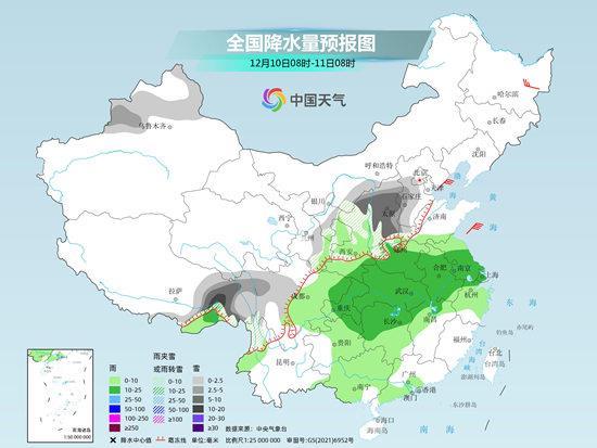 “預計12月10日開始,隨著暖濕氣流加強北上,與北方南下的冷空氣相結合,中東部地區(qū)將迎來大范圍雨雪天氣?!蹦壳皝砜?,10日至11日,華北、東北部分地區(qū)有小到中雪、局地大雪,黃淮北部、陜西北部有雨轉雨夾雪或雪,黃淮南部、江漢、江淮、江南、華南北部等地有小到中雨,局地大雨。