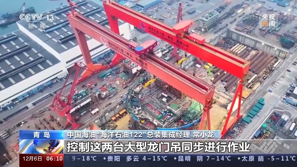 總臺(tái)央視記者 張叢婧:這里是青島海洋工程高新裝備制造基地,隨著現(xiàn)場最后一個(gè)模塊吊裝就位,意味著經(jīng)過20個(gè)月的施工,這個(gè)集原油生產(chǎn)、存儲(chǔ)、外輸?shù)裙δ苡谝惑w的新型“海上油氣加工廠”主體結(jié)構(gòu)建造完工,進(jìn)入集成調(diào)試階段。