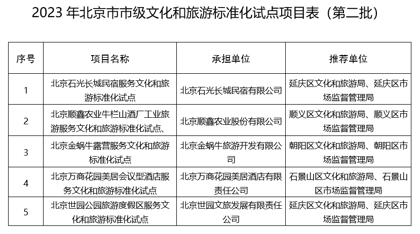 2023年北京市市級(jí)文化和旅游標(biāo)準(zhǔn)化試點(diǎn)項(xiàng)目表(第二批):