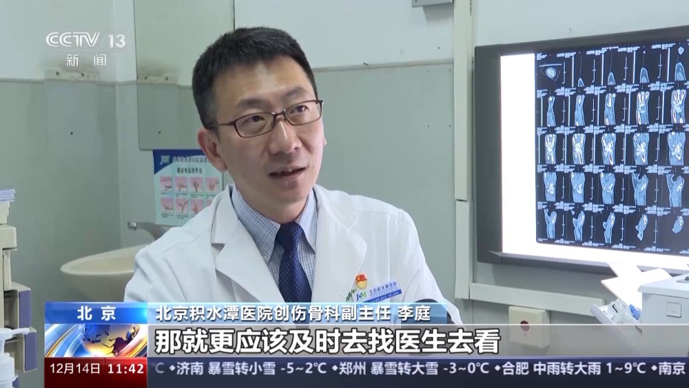 北京積水潭醫(yī)院創(chuàng)傷骨科副主任 李庭:那有些年齡更大的人滑倒摔傷之后直接坐一屁墩兒,都來(lái)不及撐地,坐一屁墩兒之后大胯(髖部)就摔折了,就是老年的髖部骨折。
