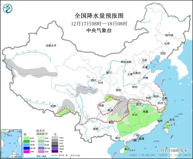 12月17日08時至18日08時,新疆南疆盆地、西藏北部和東南部、青海南部、江漢、湖南北部和西部、江西北部、浙江南部、川西高原北部、重慶東北部、西南地區(qū)東南部等地部分地區(qū)有小到中雪或雨夾雪。湖南東部和南部、江西大部、福建大部、四川盆地北部、廣西東部、廣東西北部、海南島東北部、臺灣島大部等地部分地區(qū)有小雨。