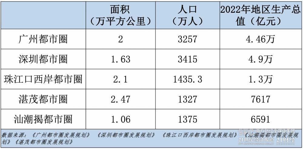 “都市圈是開放的‘圈’,是市場聯(lián)系和社會(huì)分工更密集的概念。”陳鴻宇向記者表示,都市圈的提出是為了協(xié)調(diào)城鄉(xiāng)發(fā)展,通過動(dòng)態(tài)調(diào)整規(guī)劃不斷增強(qiáng)都市圈新內(nèi)涵,將釋放廣東省區(qū)域經(jīng)濟(jì)發(fā)展的新質(zhì)生產(chǎn)力。據(jù)公開數(shù)據(jù)顯示,2022年,廣州都市圈地區(qū)生產(chǎn)總值4.46萬億元,深圳都市圈4.9萬億元,珠江口西岸都市圈1.3萬億元,汕潮揭都市圈7617億元,湛茂都市圈6591億元,合計(jì)12.08萬億元。