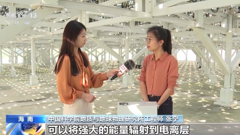 中國科學(xué)院地質(zhì)與地球物理研究所工程師 張寧:通過8320個組件可以將強大的能量輻射到電離層,然后電離層會散射微弱的回波信號。然后我們通過低噪聲放大和波形的編解碼,可以對微弱的散射信號進(jìn)行分析,得到電離層的參數(shù),將電離層中電子和離子的狀態(tài),像顯微鏡一樣放大給科學(xué)家。