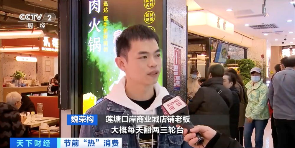 蓮塘口岸商業(yè)城店鋪老板 魏榮構(gòu):我們店里大概有20多張桌,每天翻兩三輪臺(tái),單日營(yíng)業(yè)額大概三四萬(wàn)元。