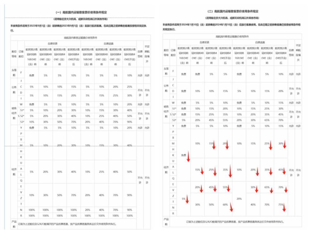 南航退改規(guī)則調(diào)整前后手續(xù)費收取標準對比