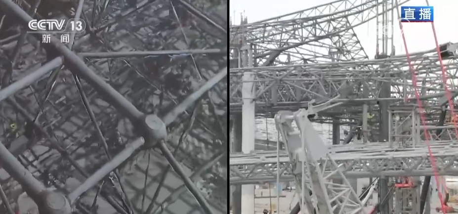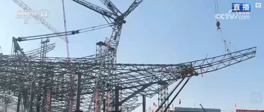 總臺(tái)記者 韓志濤:隨著最后一榀鋼梁順利吊裝到位,機(jī)場(chǎng)主航站樓鋼結(jié)構(gòu)合攏。航站樓的設(shè)計(jì)靈感來源于閩南傳統(tǒng)大厝,遠(yuǎn)看就像一只展翅飛翔的白鷺。白鷺身體部分就是主航站樓,像一個(gè)大屋蓋,總面積相當(dāng)于18個(gè)標(biāo)準(zhǔn)足球場(chǎng),總用鋼量達(dá)到1.1萬噸,重量相當(dāng)于181節(jié)火車車廂。想把這些鋼梁安全架上去,誤差要控制在毫米級(jí),可以說難度非常大,究竟是怎么完成的?建設(shè)者們想了一個(gè)巧妙的辦法,像拼搭積木一樣把屋蓋分為三個(gè)部分,先在樓面的原位進(jìn)行拼接,然后是分區(qū)域用液壓設(shè)備同步提升,最后在空中轉(zhuǎn)體調(diào)整角度。施工人員介紹,作業(yè)中最大單個(gè)提升區(qū)面積達(dá)3萬多平方米,提升重量有2600多噸,由數(shù)萬個(gè)構(gòu)件拼接而成。完成后同步啟動(dòng)60多個(gè)液壓提升點(diǎn)向上整體提升1米,懸空后通過空中旋轉(zhuǎn)7度,調(diào)節(jié)到設(shè)計(jì)姿態(tài),最后提升到31米后精準(zhǔn)安裝。