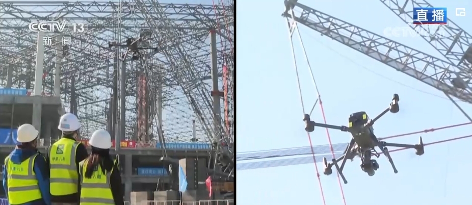 總臺(tái)記者 韓志濤:施工當(dāng)中要在高空中定位,并且多臺(tái)液壓機(jī)同時(shí)提升,誤差要控制在3毫米以內(nèi),這樣的精度是如何把控的?屋蓋上空有無人機(jī)在飛行,它在完成攝影的同時(shí),會(huì)同步按照規(guī)劃好的航測(cè)路線,直接構(gòu)建屋蓋網(wǎng)架的高精度三維模型,同時(shí)完成實(shí)體與數(shù)字模型的精準(zhǔn)對(duì)接。這些鋼梁上都有一個(gè)應(yīng)變傳感器,它是一個(gè)診斷小能手,可以為屋蓋結(jié)構(gòu)提供全天候監(jiān)測(cè)診斷服務(wù),通過精準(zhǔn)“把脈”保證屋蓋網(wǎng)架結(jié)構(gòu)從施工到運(yùn)營(yíng)的數(shù)據(jù)安全。施工方還創(chuàng)建了規(guī)劃設(shè)計(jì)統(tǒng)籌、目標(biāo)工期管控、特殊工藝運(yùn)用等“三大智囊平臺(tái)”,通過數(shù)字化、智能化全力推進(jìn)機(jī)場(chǎng)建設(shè)。