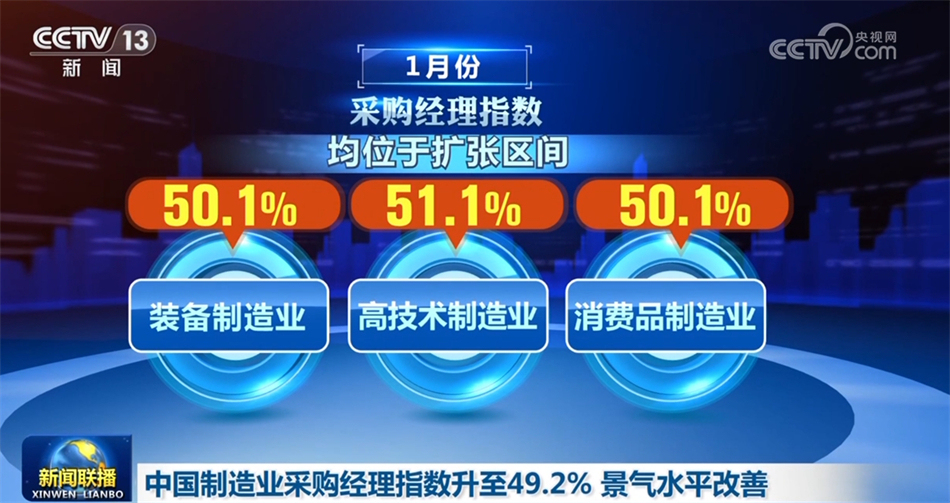 中國物流與采購聯(lián)合會、國家統(tǒng)計(jì)局服務(wù)業(yè)調(diào)查中心1月31日公布,1月份中國制造業(yè)采購經(jīng)理指數(shù)為49.2%,較上月回升0.2個(gè)百分點(diǎn),結(jié)束了連續(xù)3個(gè)月下降勢頭,景氣水平有所改善。