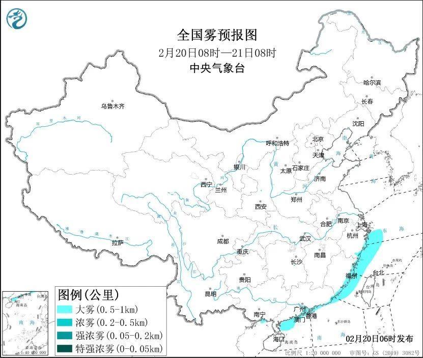 預(yù)計(jì),20日白天至夜間,東海西部海域、浙閩沿岸海域、臺(tái)灣海峽、廣東沿岸海域、廣西沿岸海域?qū)⒂写箪F,能見度不足1公里。此外,20日早晨至上午,浙江東南部、廣東東南部等地將有大霧天氣,局地有能見度不足500米的濃霧。