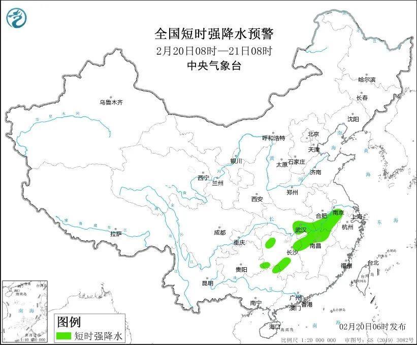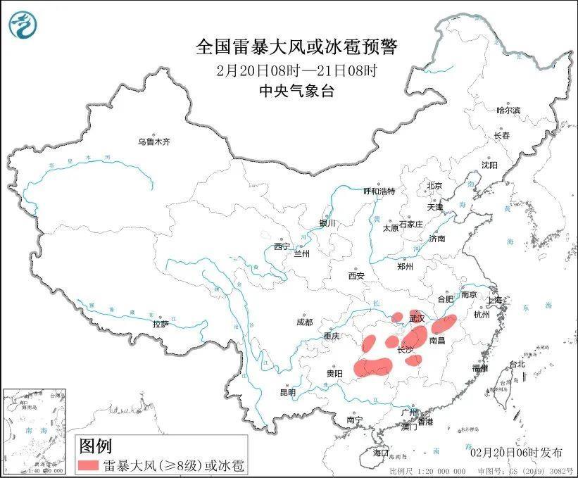 預(yù)計(jì)2月20日8時(shí)至21日8時(shí),安徽西南部、湖北東部和南部、湖南中北部和西南部、江西中北部、貴州東南部、廣西東北部等地的局地將有8至10級(jí)雷暴大風(fēng)或冰雹天氣;安徽中南部、江蘇西南部、湖北東部、湖南南部和西部、江西北部、廣西東北部等地的部分地區(qū)將有短時(shí)強(qiáng)降水天氣,最大小時(shí)雨量20至30毫米,局地可達(dá)35毫米以上。