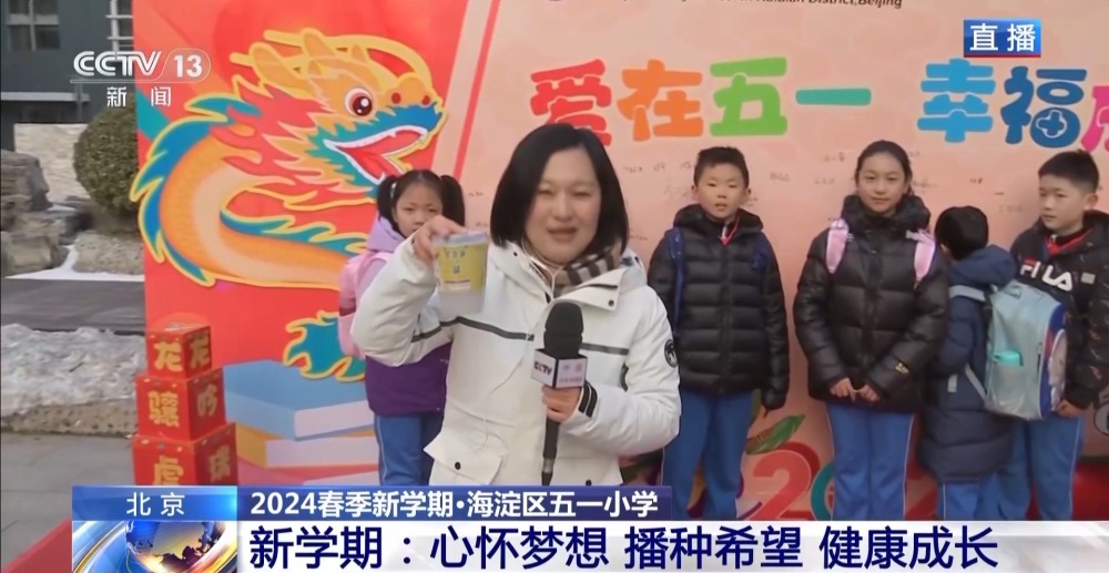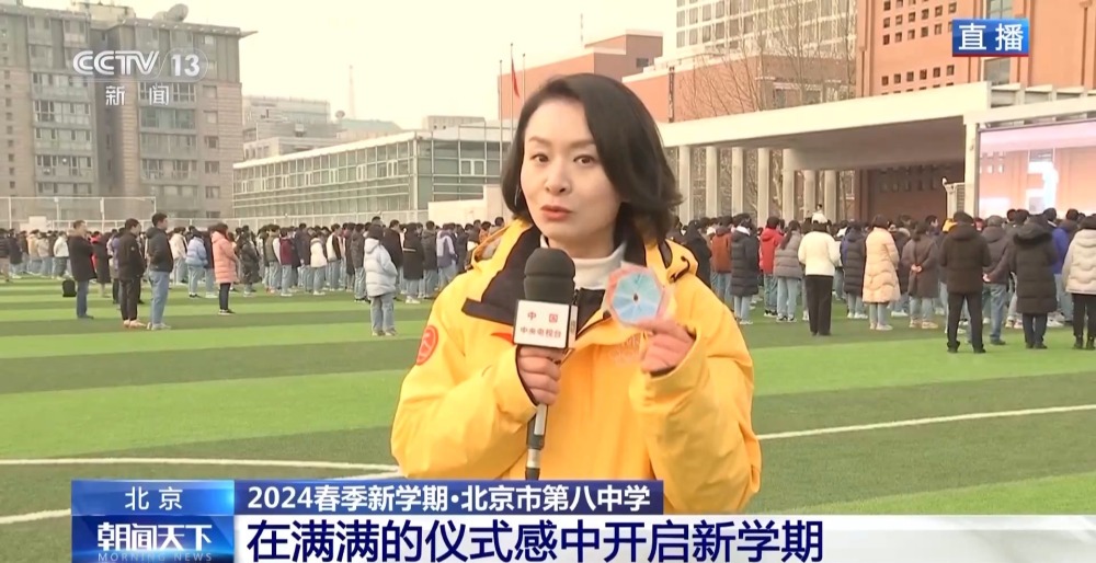 總臺(tái)央視記者 李晶晶:北京市第八中學(xué)高中部,近2300名高中生齊聚國(guó)旗下,舉行新學(xué)期的第一次升旗儀式,在滿滿的儀式感中開(kāi)啟新的學(xué)習(xí)生活。今年是龍年,有句祝福語(yǔ)叫“龍行龘龘,前程?hào)T朤”,現(xiàn)在正在進(jìn)行的國(guó)旗下的演講,題目就是《龘龘朤朤間是向上的力量》,老師祝福學(xué)生們像龍一樣騰飛而上,同時(shí)也是鼓勵(lì)他們要有夢(mèng)想,為實(shí)現(xiàn)夢(mèng)想不斷努力向上。