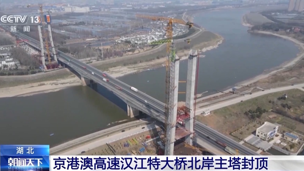 進(jìn)度條更新!京港澳高速漢江特大橋北岸主塔封頂