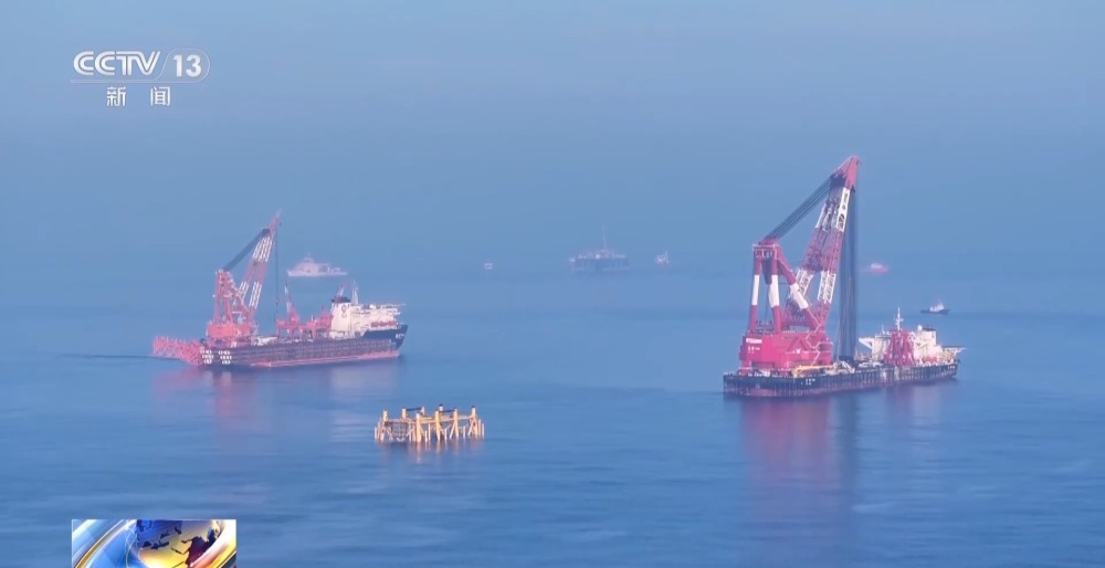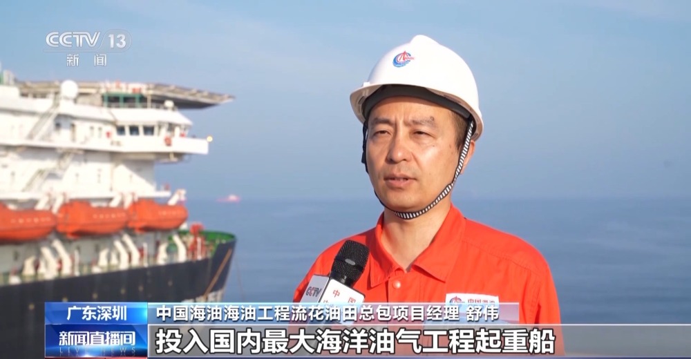 總臺央視記者 古峻嶺:在“海基二號”海上安裝作業(yè)現(xiàn)場,經(jīng)過16個小時的連續(xù)施工作業(yè),“海基二號”已經(jīng)由昨天滑移下水時的橫向漂浮狀態(tài),變?yōu)橹绷顟B(tài),它高達(dá)338米的龐大身軀,已經(jīng)穩(wěn)穩(wěn)站立在了324米深的海床之上,僅有10余米的部分露出水面,接下來工作人員將以它為基礎(chǔ),建設(shè)安裝一座萬噸級海上鉆井平臺。未來它將在臺風(fēng)和惡劣海況的輪番考驗下,在這里穩(wěn)穩(wěn)矗立30年,源源不斷地將深海油氣輸送到千家萬戶,為保障國家能源安全提供堅強(qiáng)支撐。