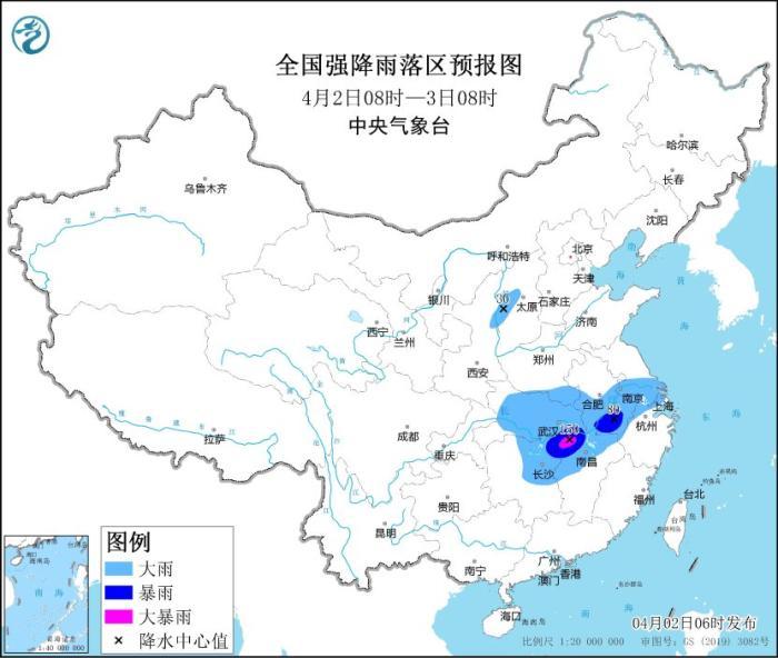 預(yù)計,4月2日08時至3日08時,湖北大部、河南南部、安徽南部、江蘇南部、上海北部、湖南東北部、江西北部、浙江西北部等地部分地區(qū)有大到暴雨,其中,湖北東南部、湖南東北部、安徽東南部、江西東北部等地局地有大暴雨(100~150毫米);湖北南部、湖南中北部、江西中北部、浙江中東部、廣西東北部等地的部分地區(qū)將有8-10級雷暴大風(fēng)或冰雹天氣,局地風(fēng)力可達11級以上,冰雹直徑可達2厘米;安徽中南部、江蘇南部、上海北部、湖北東部和南部、湖南中北部、江西中北部、浙江西部和北部、福建西北部、重慶中東部、貴州東部、廣西東北部等地的部分地區(qū)將有短時強降水天氣,最大小時雨量30-50毫米,局地可達70毫米以上。預(yù)計,強對流的主要影響時段為今天午后至夜間。中央氣象臺4月2日06時繼續(xù)發(fā)布暴雨藍色預(yù)警和強對流天氣黃色預(yù)警。