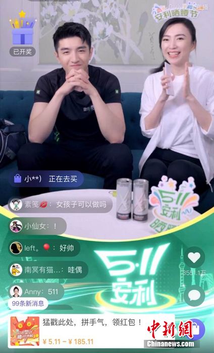安利(中國)總裁余放(右一)參與直播互動(dòng)