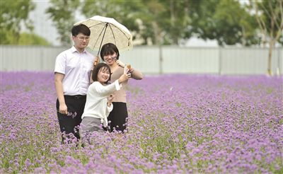 七彩花田總面積約5.6萬平方米,采用宿根花卉、草本花卉間種的形式,可實現(xiàn)春、夏、秋三季均有花可觀。昨天記者在現(xiàn)場看到,7000平方米的紫色馬鞭草成片盛開,風(fēng)吹花浪起伏。據(jù)相關(guān)負責人介紹,七彩花田是空港生態(tài)綠廊項目的重要組成部分。目前,保稅區(qū)已建成公共綠地1020萬平方米。(文/記者 戰(zhàn)旗 圖/記者 賈磊)