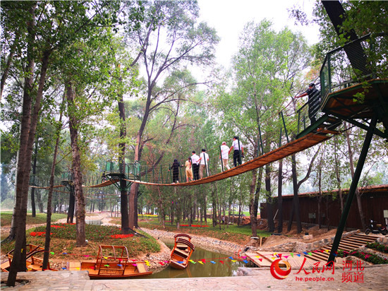 圖為國內(nèi)首家推出的創(chuàng)意旅游體驗(yàn)項(xiàng)目——樹橋。楊文娟攝