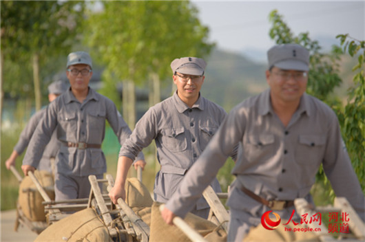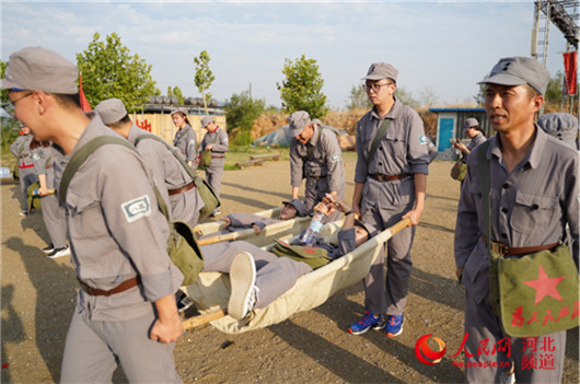 參觀結(jié)束后,學(xué)員推起獨輪車、挑起扁擔,將“軍糧”送往抗戰(zhàn)一線。耳畔響起的是陳毅元帥曾說:“淮海戰(zhàn)役的勝利是老百姓用小車推出來的”。抬起受傷的“戰(zhàn)友”送往“后方”救治。一系列有感染力和實操性的軍事化體驗教學(xué),讓黨性教育更“走心”。