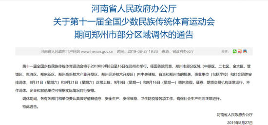 第十一屆全國少數(shù)民族傳統(tǒng)體育運動會期間鄭州部分區(qū)域調(diào)休
