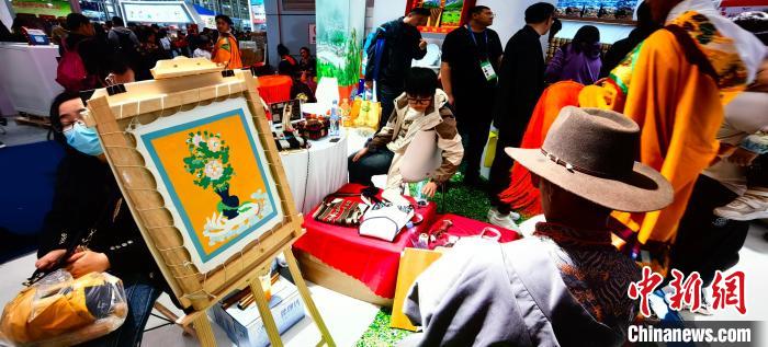 19日,來自高原的特色產(chǎn)品成為展館里一道亮麗的風(fēng)景線。各地的游客在展區(qū)近距離與非遺傳承人溝通,深入了解西藏文化資源、旅游資源。