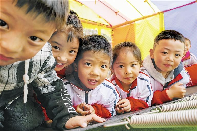 圖為昌都市邊壩縣第一小學的孩子們在課間快樂地玩耍。本報記者 丹增群培 攝