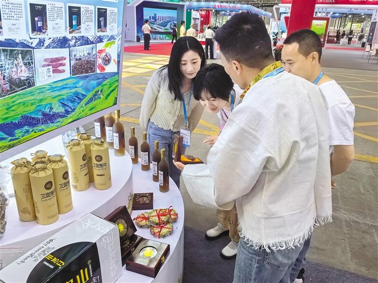 今年5月底,昌都市藍天圣潔農(nóng)業(yè)發(fā)展集團有限公司選取藏香雞、葡萄酒、藏香、當歸等300余種優(yōu)質農(nóng)特產(chǎn)品走進第六屆中國西部國際投資貿易洽談會,促成兩地8家企業(yè)現(xiàn)場簽署2300萬元產(chǎn)銷合作協(xié)議。
