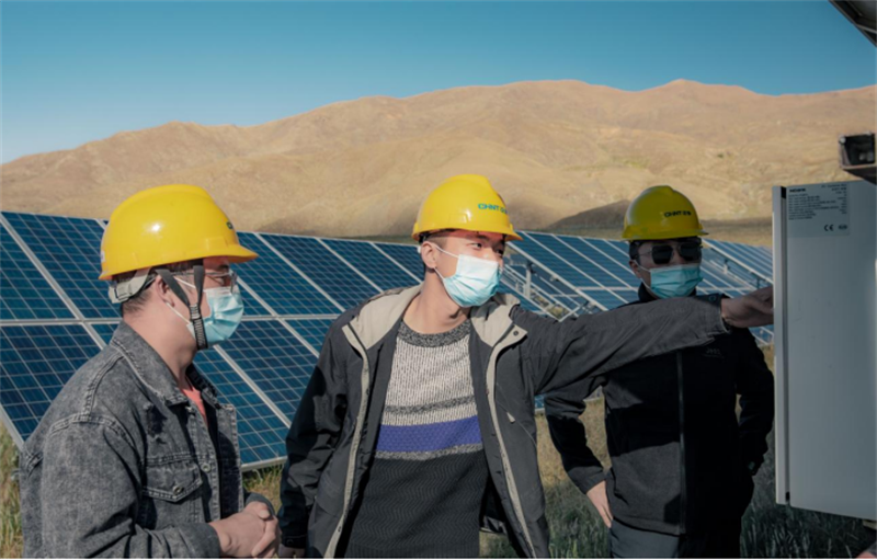 陶瑞勇(中)調(diào)研瓊結(jié)光伏發(fā)電項(xiàng)目運(yùn)營情況。曲杰供圖