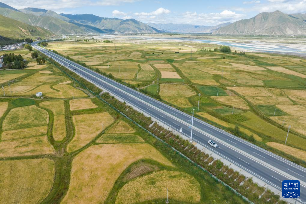 從空中俯瞰西藏拉薩至日喀則高等級(高速)公路南木林段(9月11日攝,無人機(jī)照片)。