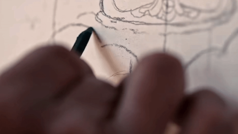 才仁桑珠為一幅唐卡漆畫(huà)巨作起草線稿。新華社記者魏冠宇 攝