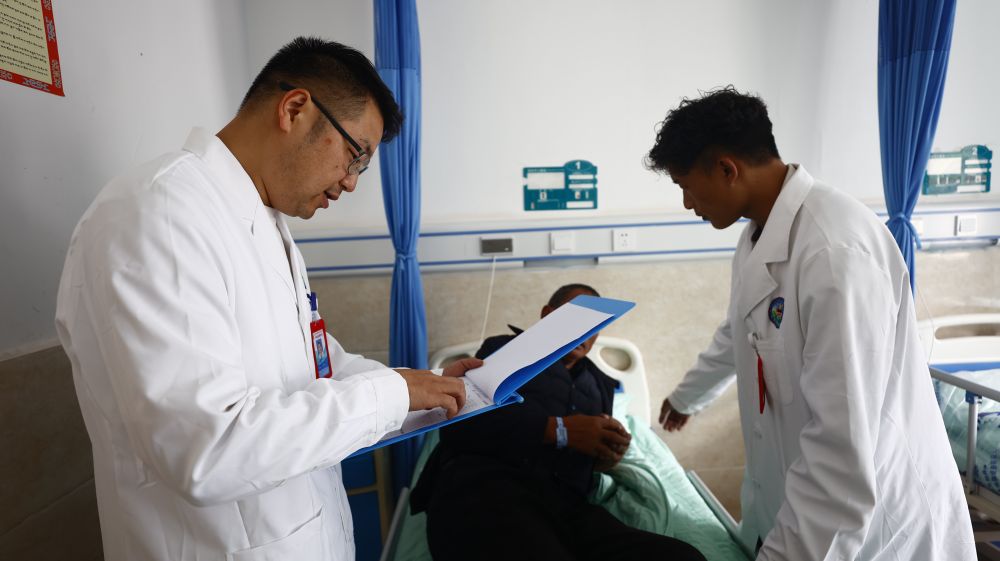 向桂林是一名援藏醫(yī)生,2023年3月,他從重慶市萬(wàn)州區(qū)來(lái)到西藏自治區(qū)昌都市察雅縣開(kāi)展醫(yī)療援藏工作。在察雅的一年半里,向桂林和隊(duì)員們參加了一百多次義診和下鄉(xiāng)指導(dǎo),累計(jì)接診門(mén)診患者1000余人次、救治住院患者400余人次,開(kāi)展手術(shù)35臺(tái),申報(bào)新技術(shù)10項(xiàng)。今年國(guó)慶,向桂林選擇繼續(xù)留守工作崗位。“只能在視頻通話里和家人團(tuán)聚了。但這是我們的責(zé)任更是一種榮譽(yù)?!毕蚬鹆终f(shuō)。
