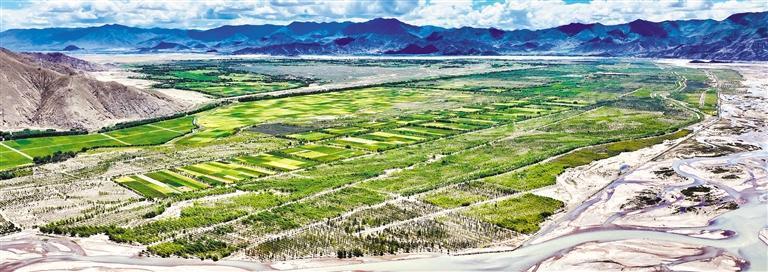 8月23日,日喀則市南木林縣“雅江北岸生態(tài)示范區(qū)”3.6萬畝生態(tài)防護林郁郁蔥蔥。經(jīng)濟日報記者 袁勇 攝