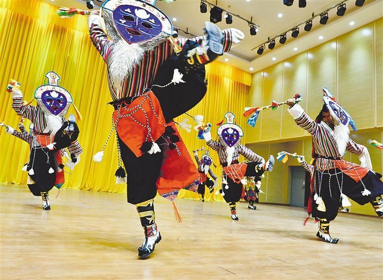 9月13日,日喀則市昂仁縣民間藝術(shù)團演員在淄博援建的迥巴藏戲國家級非物質(zhì)文化遺產(chǎn)保護中心演出。經(jīng)濟日報記者 袁勇 攝