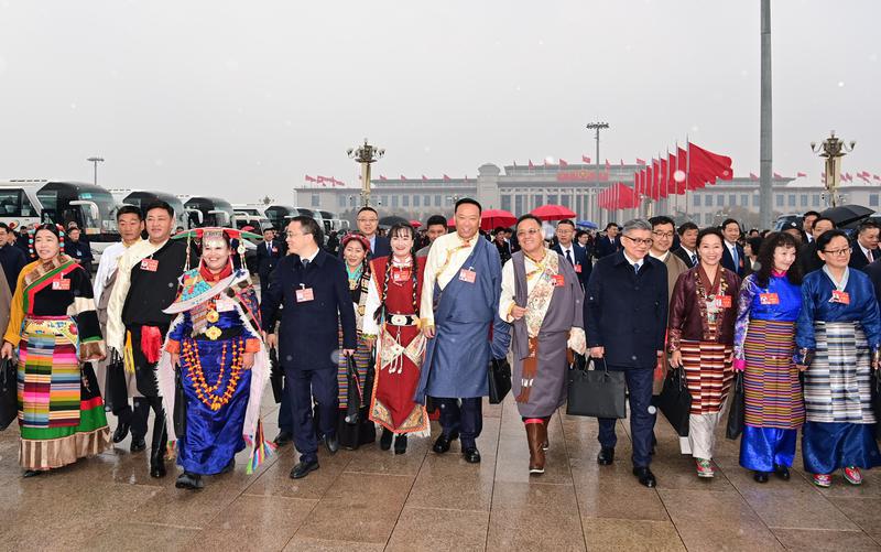 3月5日上午,十四屆全國(guó)人大二次會(huì)議在北京人民大會(huì)堂開(kāi)幕。來(lái)自西藏自治區(qū)的全國(guó)人大代表們滿(mǎn)懷信心步入人民大會(huì)堂。記者 旦增西旦 攝