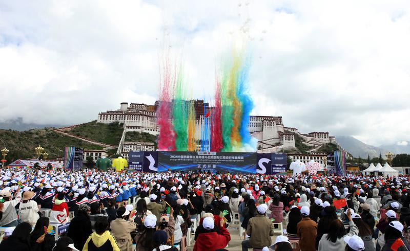 8月21日上午,2024中國(guó)西藏第五屆跨喜馬拉雅國(guó)際公路自行車(chē)極限賽在布達(dá)拉宮廣場(chǎng)開(kāi)幕。記者 白瑪澤旺 攝
