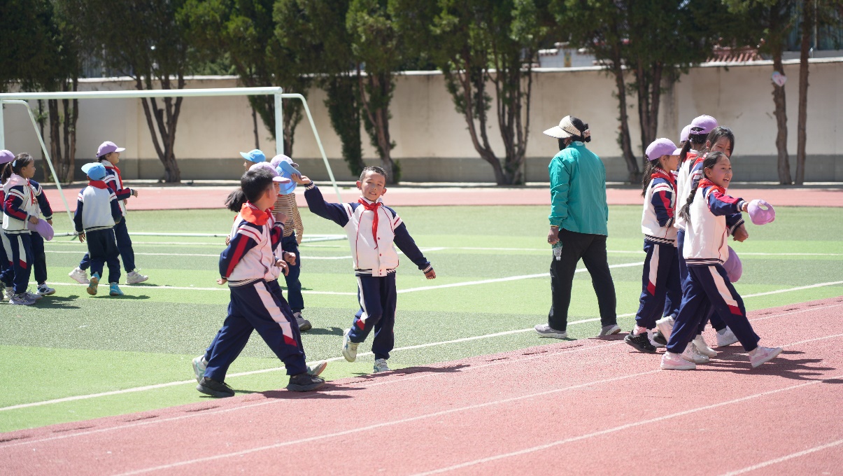 “利利老師,我們來玩老鷹抓小雞。”操場上,剛剛整隊完,正自由活動的學(xué)生喊學(xué)校的湖南援藏教師、體育學(xué)科教研組組長戴勝利。