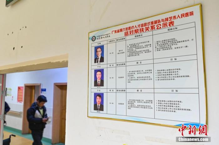 圖為2020年12月21日,西藏林芝市人民醫(yī)院內(nèi)的墻面上張貼著“廣東省第六批醫(yī)療人才組團援藏隊與林芝市人民醫(yī)院結對幫扶關系公示表”。 中新社記者 陳驥旻 攝