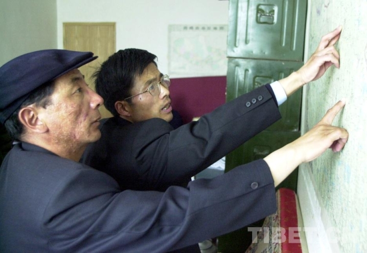 這是時(shí)任雙湖特別區(qū)(現(xiàn)雙湖縣)區(qū)委書(shū)記的范科創(chuàng)(右)與副區(qū)長(zhǎng)珠巨(左)在研究當(dāng)?shù)氐慕?jīng)濟(jì)發(fā)展規(guī)劃。為了無(wú)人區(qū)開(kāi)發(fā)事業(yè),范科創(chuàng)在這里默默奉獻(xiàn)了15個(gè)春秋。1986年,他被西藏自治區(qū)黨委授予“優(yōu)秀黨務(wù)工作者”榮譽(yù)稱號(hào)(唐召明2001年攝)