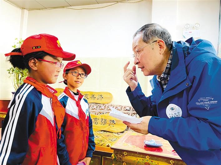 圖為濟(jì)南華視眼科醫(yī)院院長(zhǎng)王利華為白朗縣小學(xué)生進(jìn)行斜視弱視篩查。記者 陳林 攝