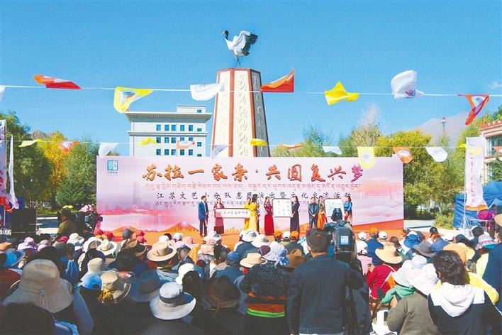 為增進江蘇、西藏兩地人民文化交流,促進民族團結(jié),共同鑄牢中華民族共同體意識,由江蘇省委宣傳部、拉薩市委宣傳部、江蘇援藏前方指揮部、江蘇省文聯(lián)主辦,拉薩市文聯(lián)、拉薩市文化局、拉薩融媒、江蘇援藏對口縣區(qū)承辦的“蘇拉一家親·共圓復(fù)興夢”惠民演出暨文化交流活動于10月13日至19日在拉薩開展。本次惠民演出包含歌曲、舞蹈、木偶、魔術(shù)等,通過非物質(zhì)文化遺產(chǎn)藝術(shù)和現(xiàn)代藝術(shù)的碰撞,展示了蘇藏兩地特色藝術(shù)文化,促進交往交流交融。