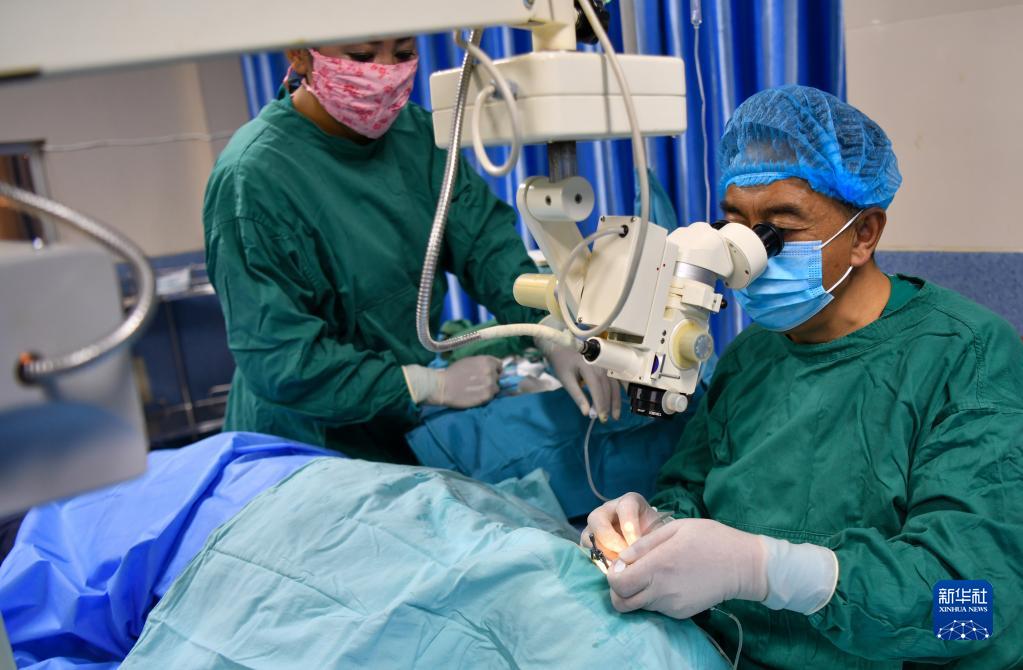 6月8日,光明眼科康復診療院的醫(yī)生在為一位農(nóng)牧民患者做白內(nèi)障手術。新華社記者 姜帆 攝