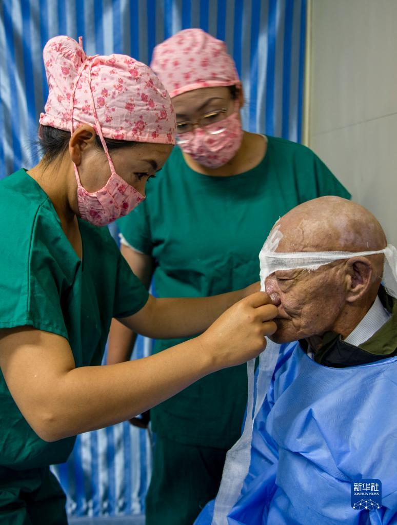 6月8日,光明眼科康復診療院的醫(yī)生在為一位農(nóng)牧民白內(nèi)障患者做術前準備。新華社記者 姜帆 攝