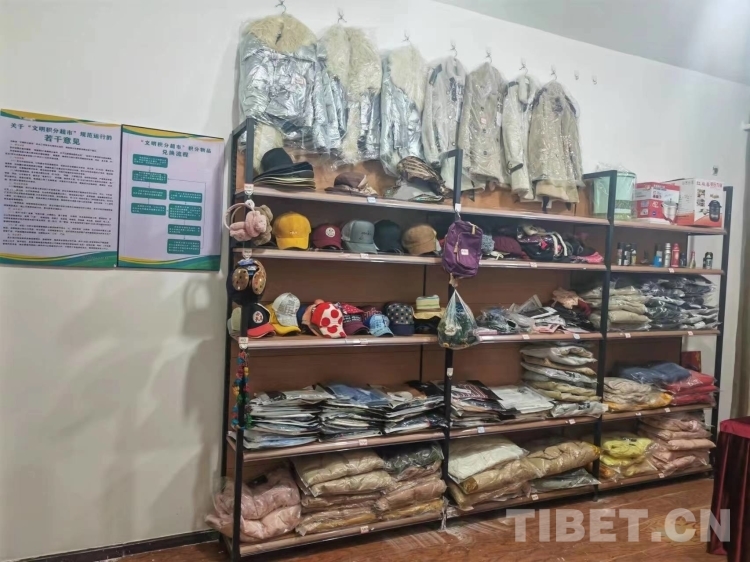 “誠信色尼文明積分超市”收到的部分捐贈(zèng)衣物