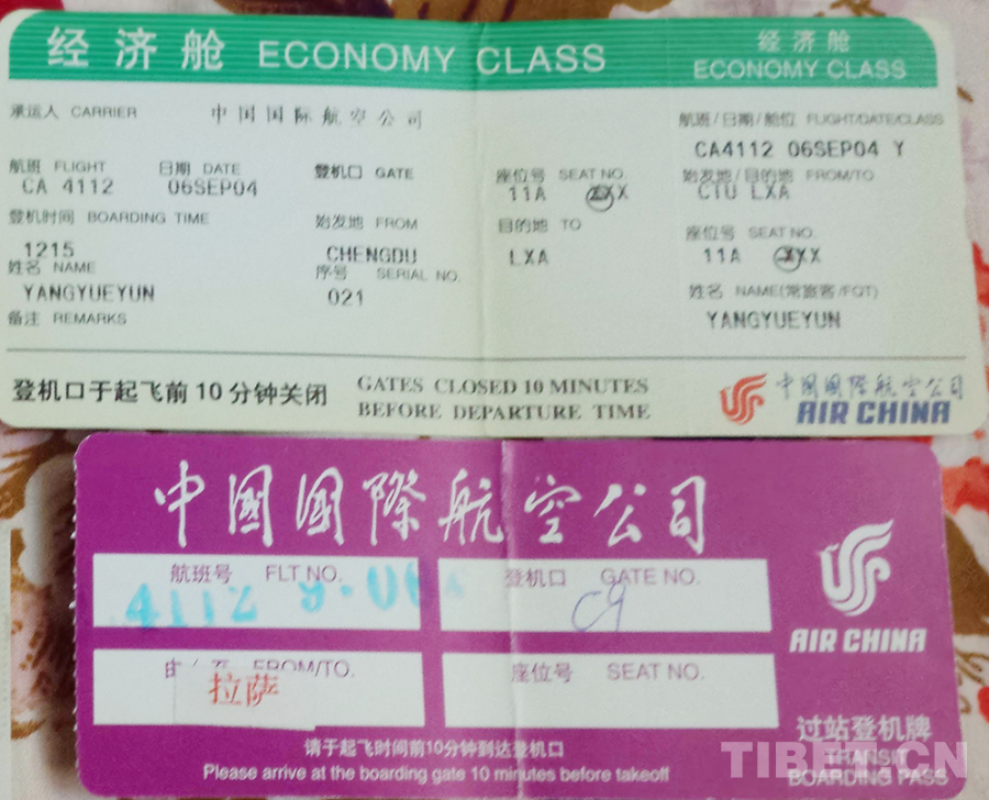 圖為2004年9月6日,作者第一次去西藏搭乘航班時(shí)的過(guò)站登機(jī)牌