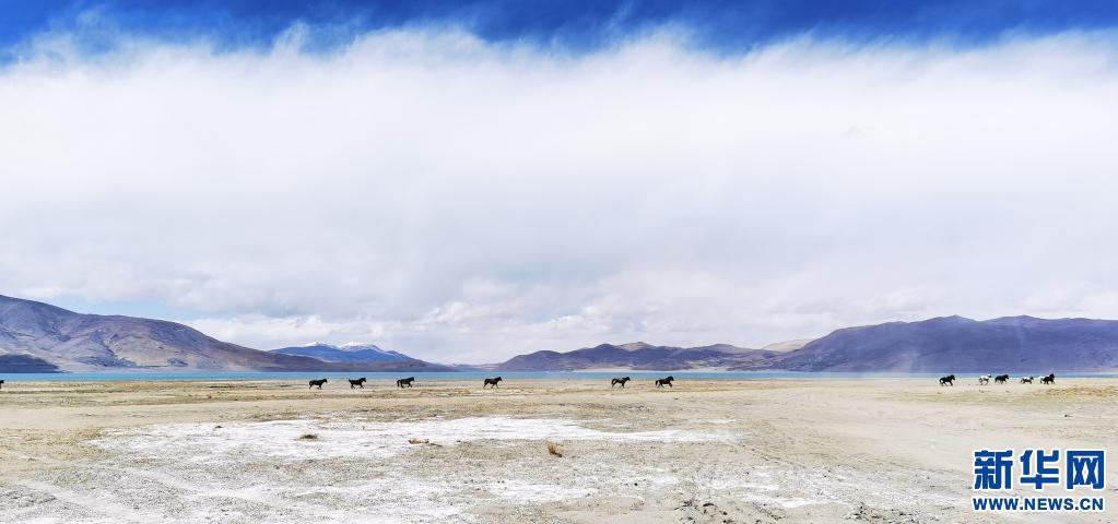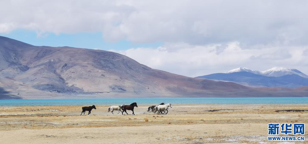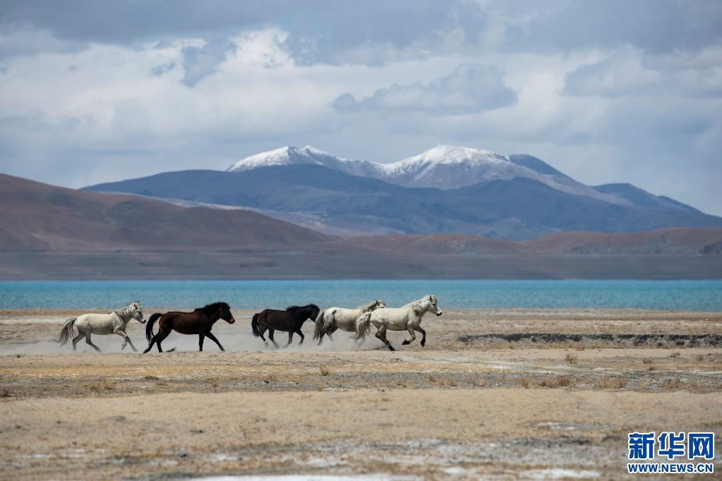 野馬在佩枯錯旁奔馳(5月14日攝)。新華社記者 孫瑞博 攝